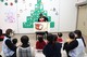聖歌を歌った後は、みんなで宝探し。クリスマスオーナメントを見つけて貼り付けて、大きなステキなクリスマスツリーの完成。