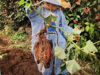 秋晴れの中、かがやき農園のサツマイモを収穫しました。