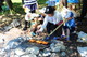 五平餅や流しそうめん、フランクフルトなど食べたり、