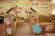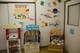 写真はかがやきの子どもたちと一緒に創った「お店屋さん」、保育実習の学生さんが作製した1年分の壁面、ダンボールで制作した乳幼児コーナーなどの様子です。