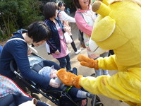 ハナちゃんがサンタに変身して子どもたちは大喜びです。