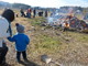 かがやきの裏の農道を歩いていくと、大きなたき火が見えてきます。