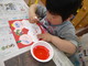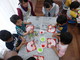 みんなでお雛様の衣装に、ペタペタときれいな色をつけました。