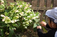 園庭のクリスマスローズの株が大きく育ち、たくさんの花をつけました。