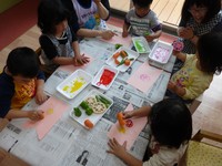 きれいな色と、いろんな模様に、子どもたちは夢中でペタペタ…