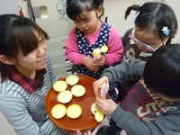 小規模グループの子どもたち、館内のみんなに「ありがとね」「いっぱいつくったね」と声をかけてもらって心もおなかもホカホカ満足…