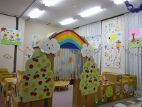かがやきでは例年通り、麦の穂会館のプレイルームで乳幼児コーナーを担当し、ダンボールのアーチやトンネル、ダンボール新幹線、12カ月の壁面展示など制作。たくさんの親子連れの皆さんの楽しんでいただくことができました!